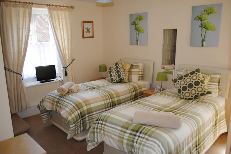 Bedroom 2: With two single beds and en suite shower room with WC and wash basin